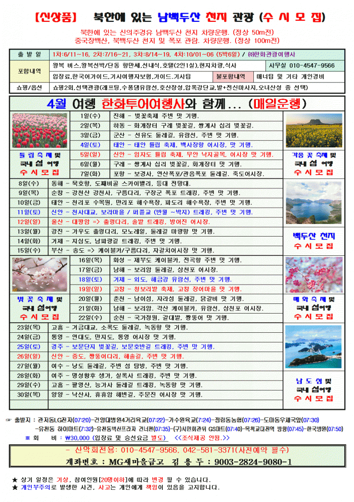 4월 여행 한화투어여행사와 함께...